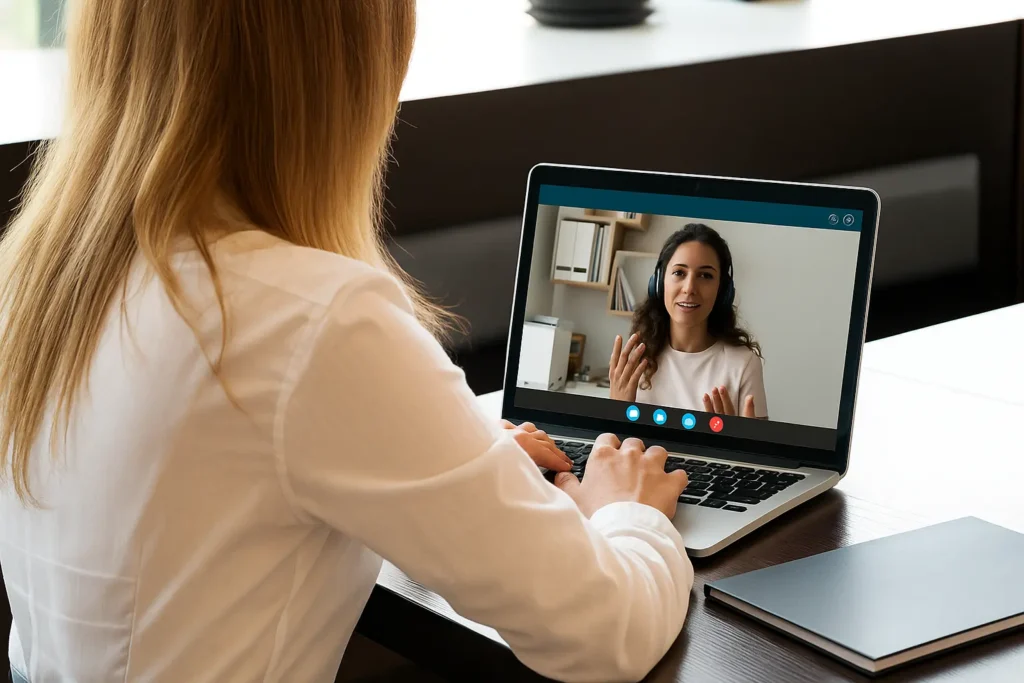 É simples e prático! A consulta é feita por videochamada via WhatsApp, Zoom ou Google Meet.