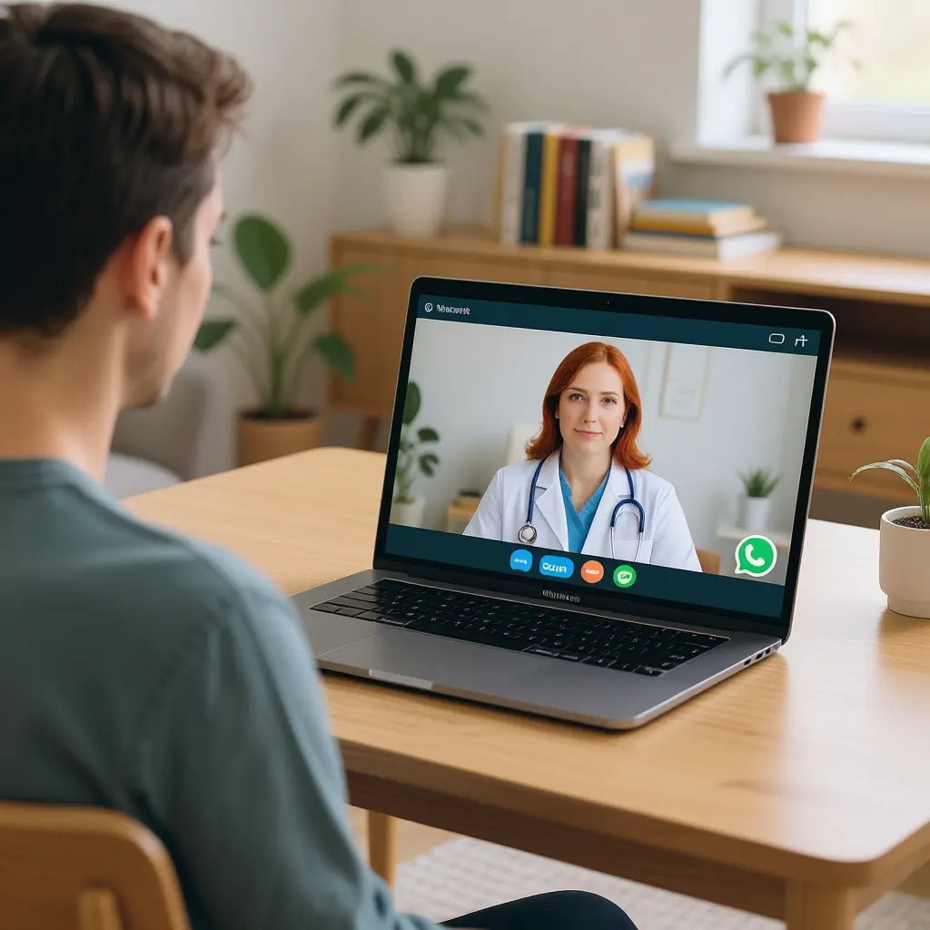 A consulta é realizada por videochamada via WhatsApp, Zoom, Google Meet ou outra plataforma segura, utilizando celular, tablet, computador ou notebook.